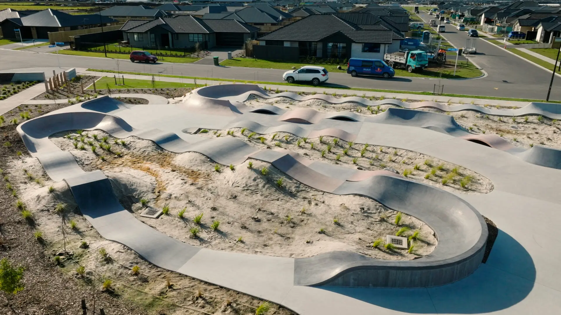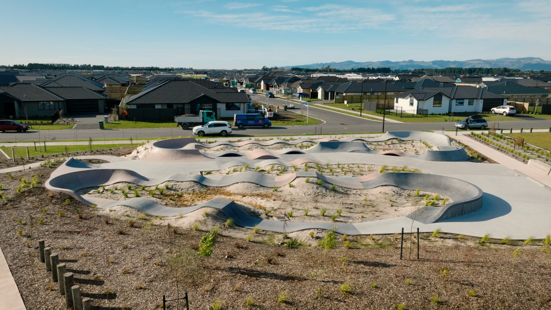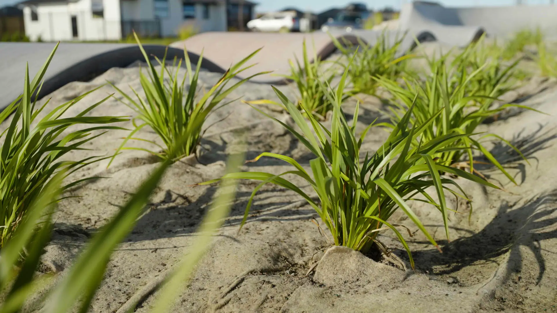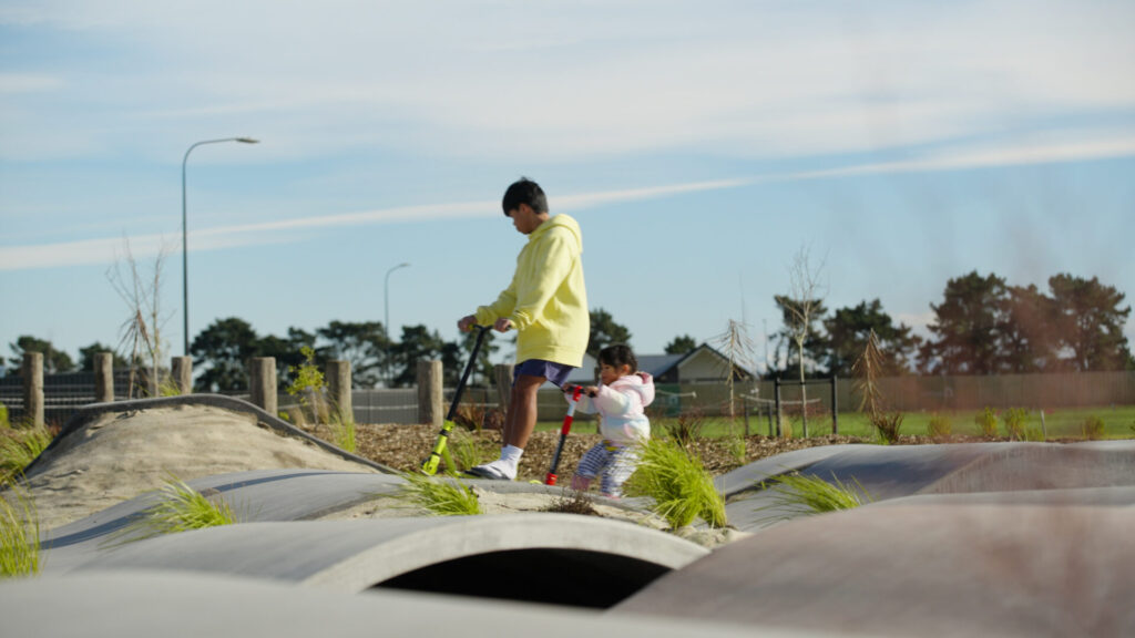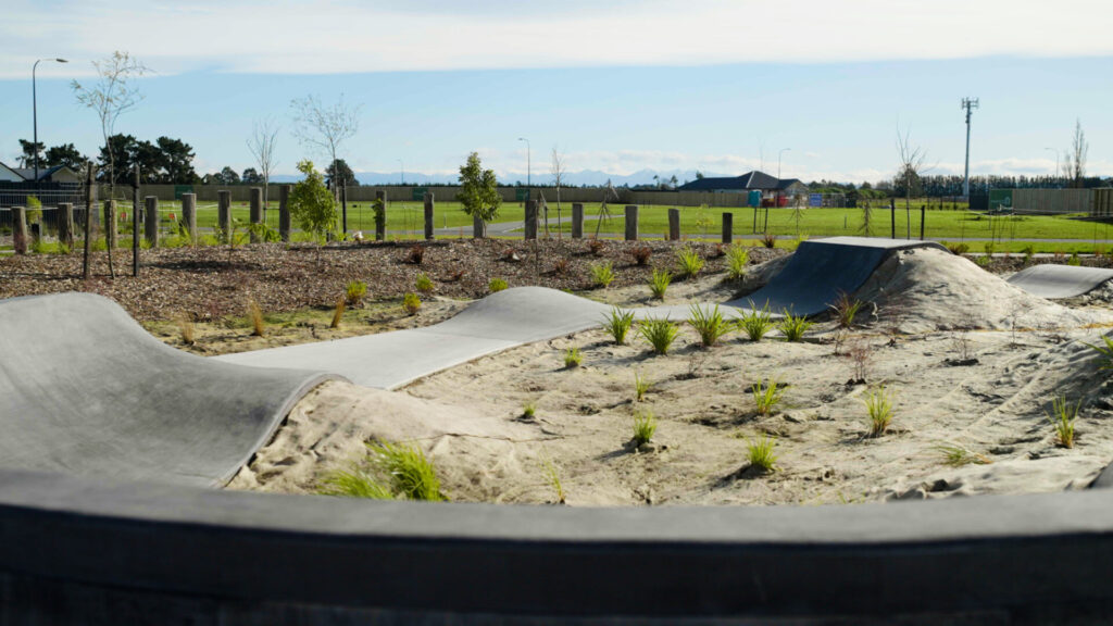 FuturFiber® Hemp 600gsm natural fibre geotextile used in the landscaping of Faringdon Pump Track, Rolleston.