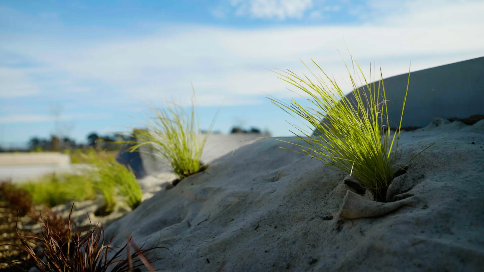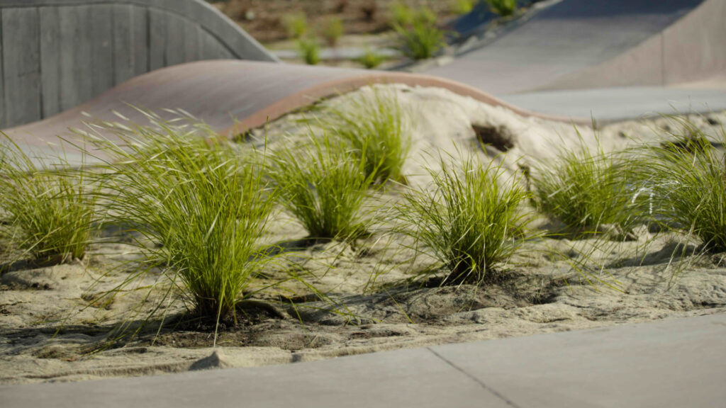 Creating an environment that thrives both visually and functionally comes with its challenges. For the Faringdon Pump Track, one such challenge was nurturing the planted greens with the constant use and creating a low maintenance environment where weeds were unable to compete. The challenge that came with this design was to be able to successfully establish the plantings using a sustainable weed suppression rather than going with a plastic weed mat which would eventually break down.