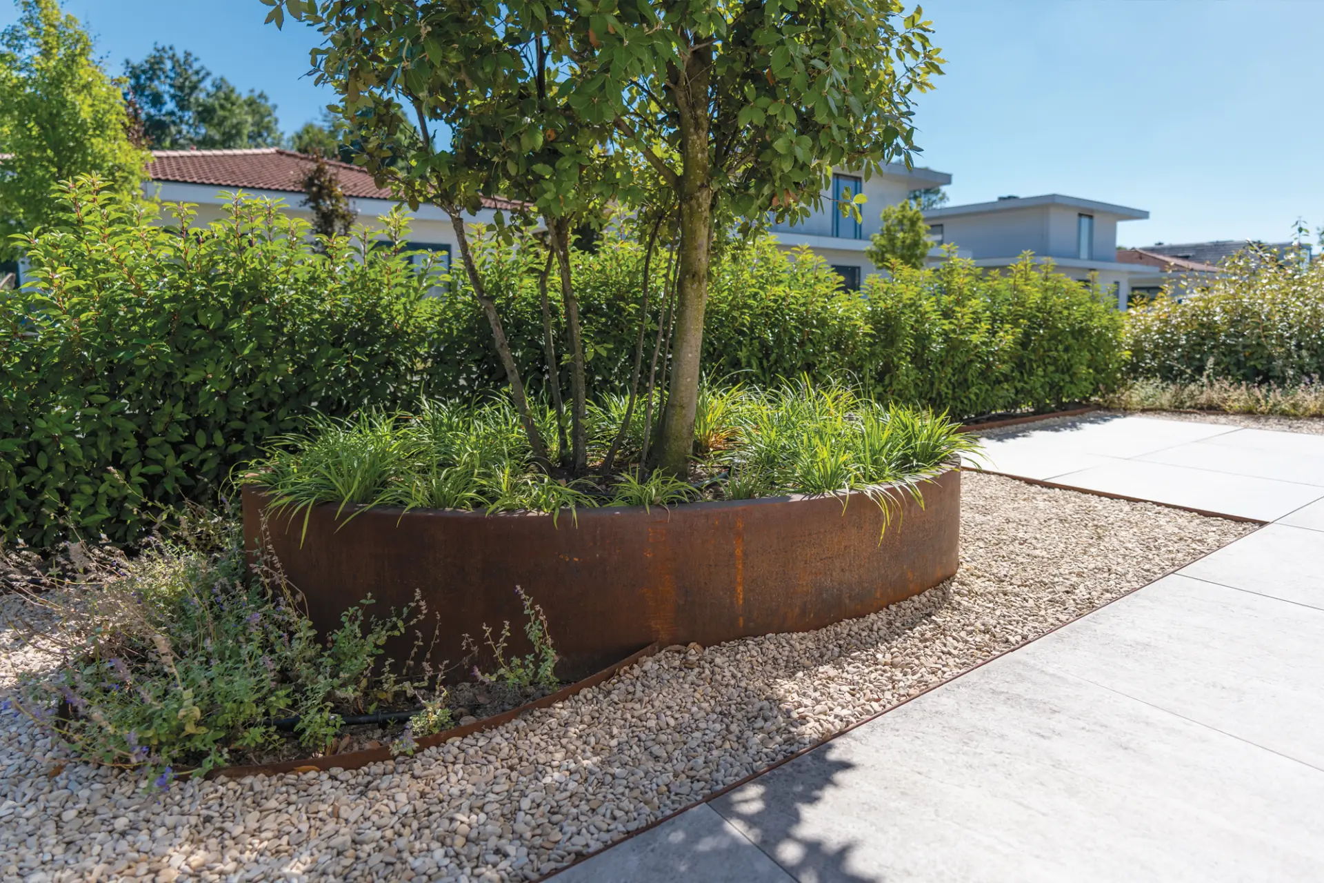 Corten steel edging designed to meet changing trends in landscape architecture. Resistant to diverse weather conditions, Archipello. edging creates a beautifully finished garden, offering the perfect balance between functionality and aesthetics.