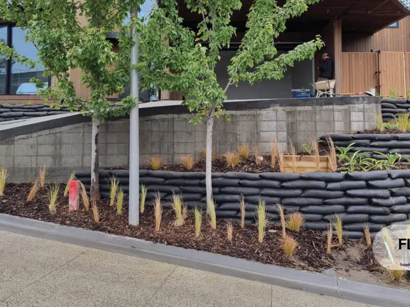 Flex MSE uses a nonwoven polypropylene Bag which is the ideal planter block for permanent vegetation. It is filled with a specific engineered medium formulated to provide superior structural integrity, effective drainage, and optimal root development.