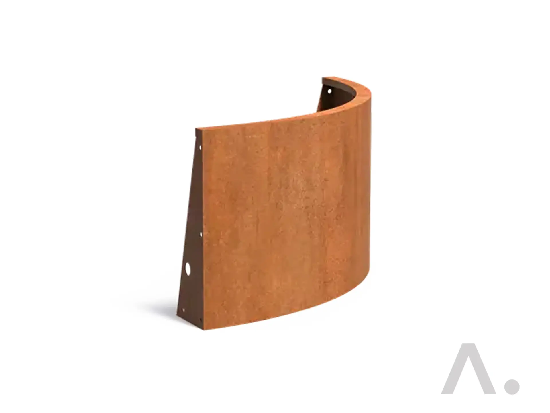 Corten steel is a metal alloy made by adding copper, phosphorus, silicon, nickel and chromium to iron. When exposed to air, the material forms a protective layer of rust. This natural coating prevents further corrosion, extending the life of the retaining wall.